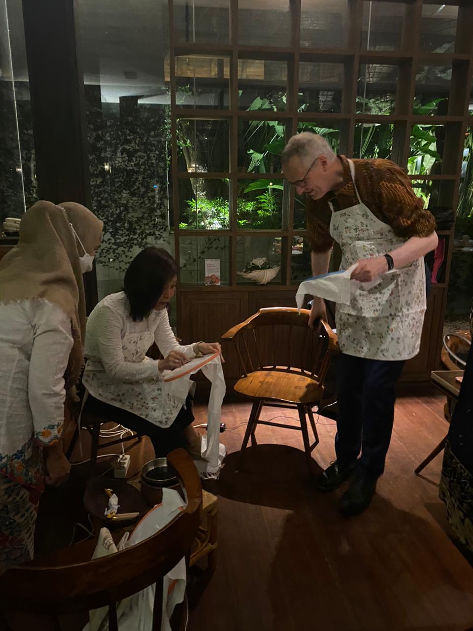 Pertemuan internal perusahaan untuk anggota Dewan Manajemen dan komite global suatu negara dari Perusahaan Farmasi pada bulan Juli 2023, yaitu: Serangkaian acara penyambutan dengan tarian Bali dan dinner di Restaurant Bebek Bengil Tangerang Lunch di Restaurant Seribu Rasa Menteng, Jakarta dimulai dengan show membatik tulis dilanjutan kegiatan para tamu belajar membatik